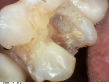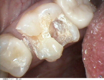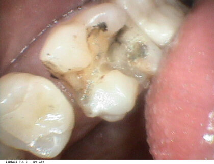 こんな感じです。痛みも何もありませんでしたが 銀歯を外してみた所 中には たくさん虫歯が! 神経にもかなり近くなっていました。